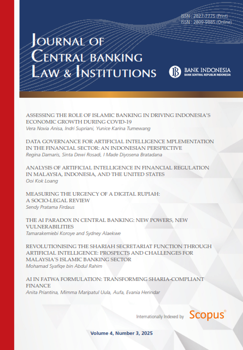 Journal of Central Banking Law and Institutions (JCLI) is an international peer-reviewed journal published by Bank Indonesia Institute. JCLI focuses on a range of topics examining the intersection of central banking law and institutions on monetary, financial system, and payment systems that include regulations, governance (transparency & accountability), credibility, institutional politics, institutional arrangements, and institutional communication.